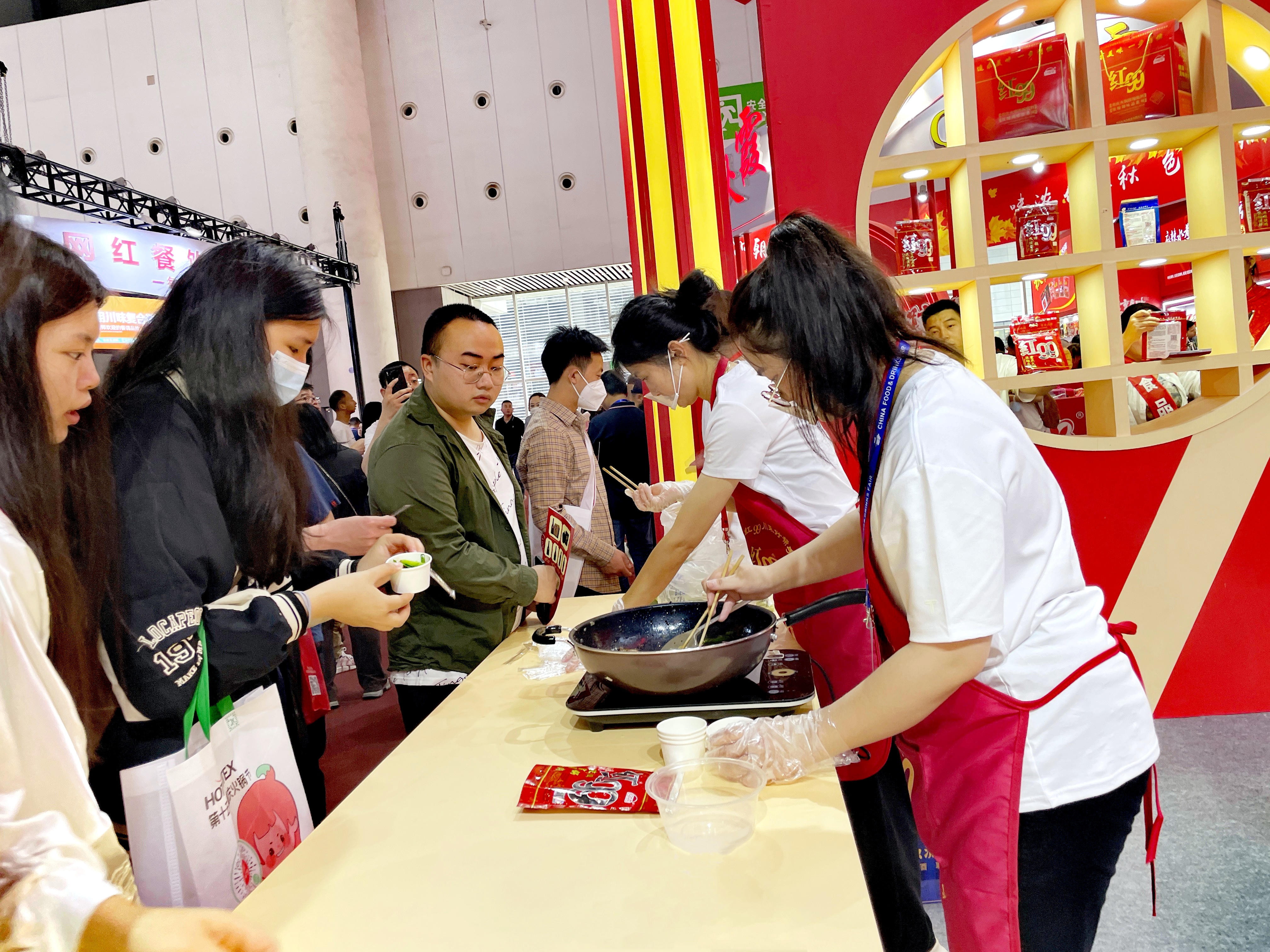 在紅九九品牌服務商-重慶貓頭鷹科技公司展區(qū),工作人員現(xiàn)場展示并詳細說明具體操作流程,只需兩步就能享用地道重慶火鍋。省時、省事、省心、方便、快捷是它的優(yōu)點;同時,紅99牌濃縮火鍋底料更是眾多家庭、餐廳、火鍋餐館、酒店選擇的方便型調(diào)味料,也是饋贈親友之佳品。希望可以將這份美味分享給全國乃至全世界的朋友們,即使在他鄉(xiāng)也能吃到正宗的重慶火鍋。
